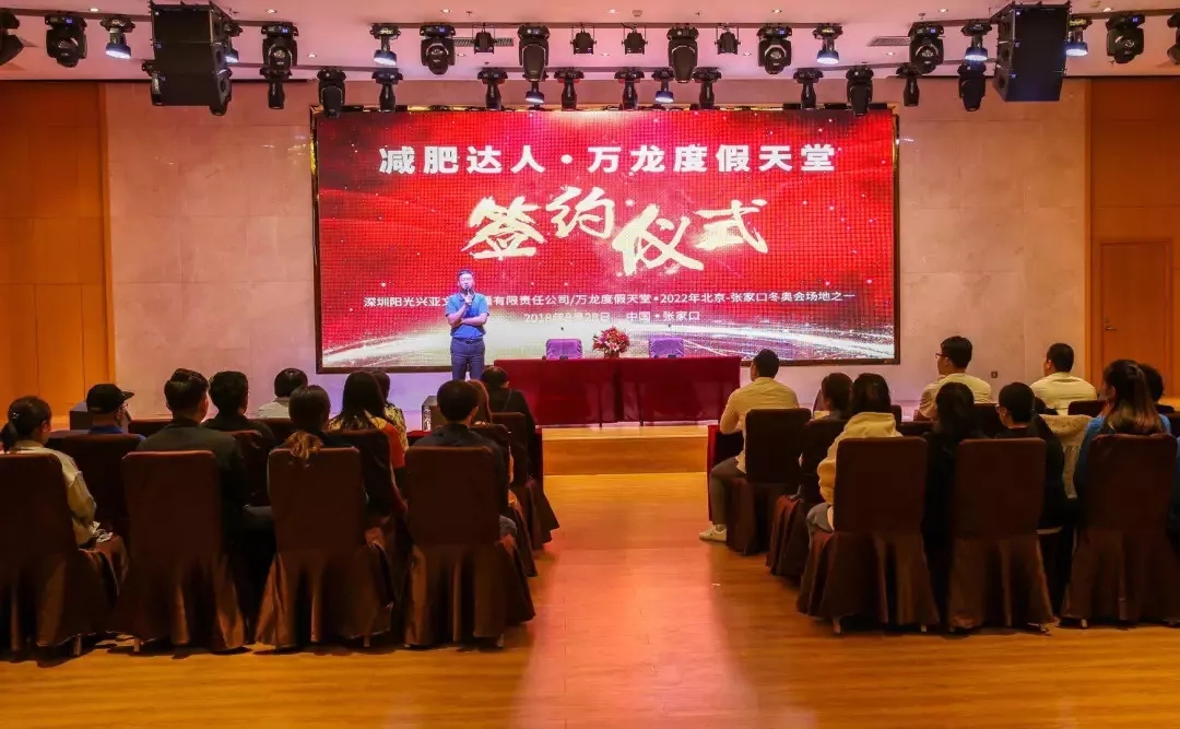 8月28日,深圳阳光兴亚文化传播有限责任公司(减肥达人)与万龙度假天堂达成合作,签约仪式在万龙度假天堂总部举行。