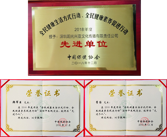 阳光兴亚荣获中国保健协会先进单位和先进个人